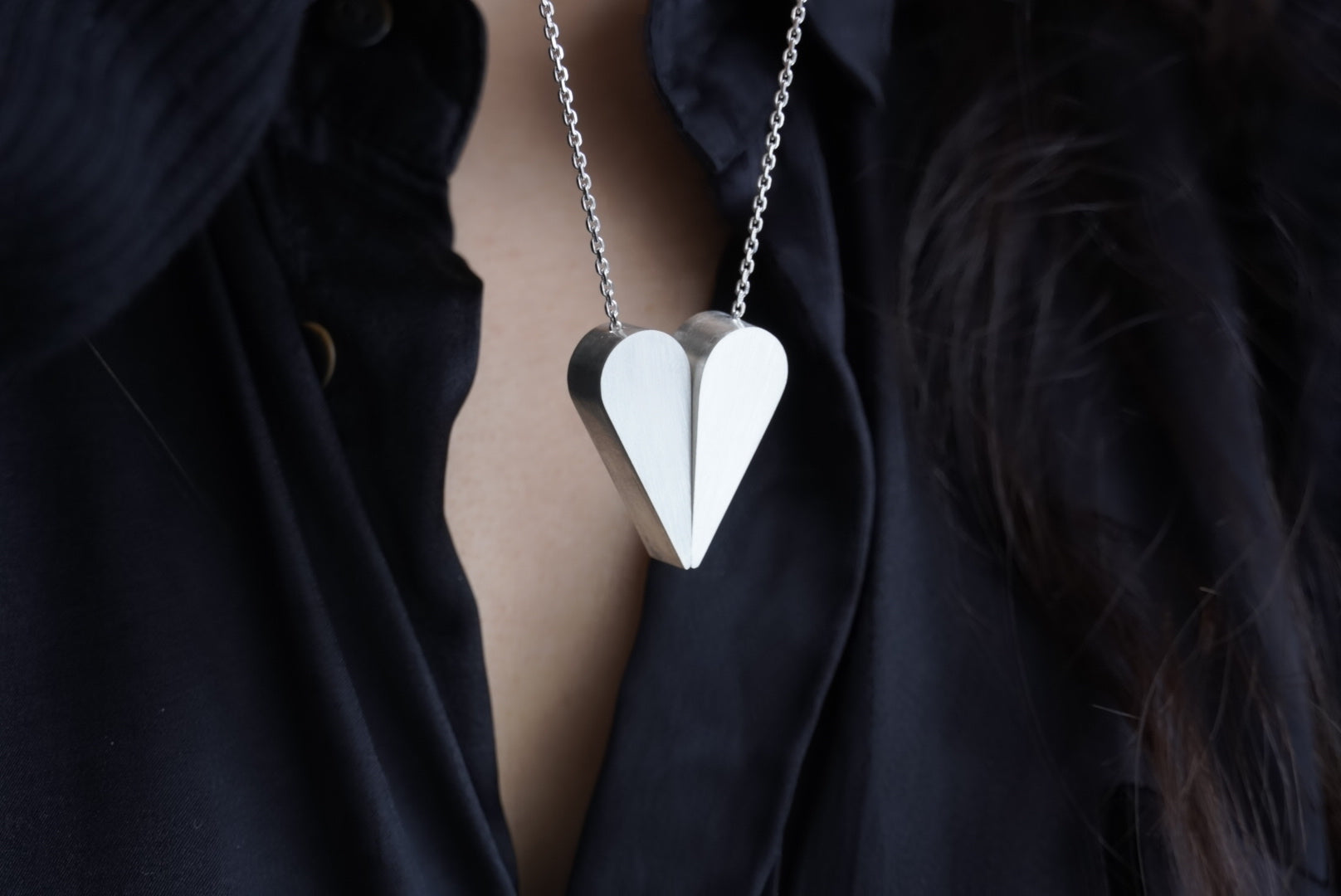 Hangs at the collarbone |