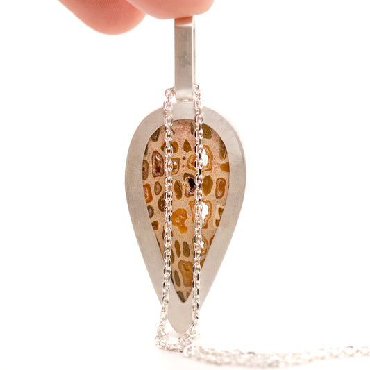 Teardrop Palm Root Fossil Necklace – Petrified Wood Pendant in Silver