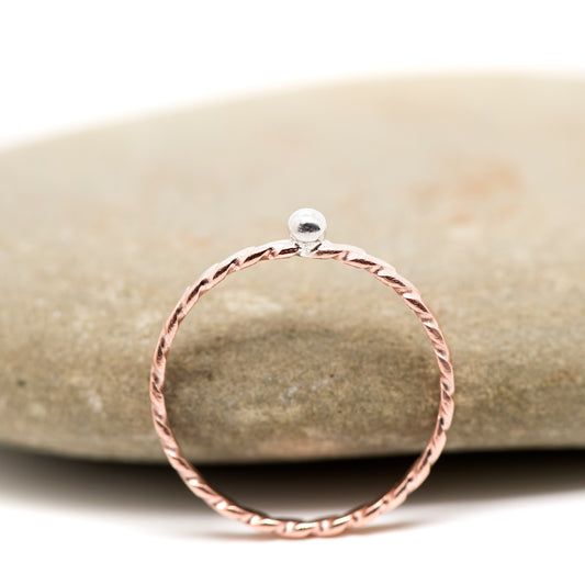 Dotwork Silver and Copper ring, Stacking ring, Single Dot