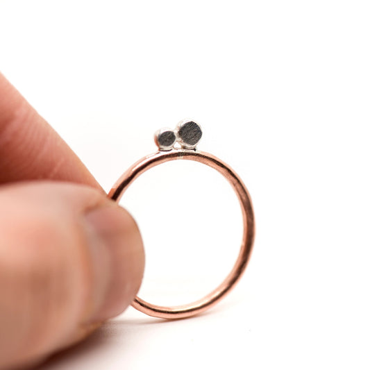 Dotwork Silver and Copper ring, Stacking ring, Two Dots