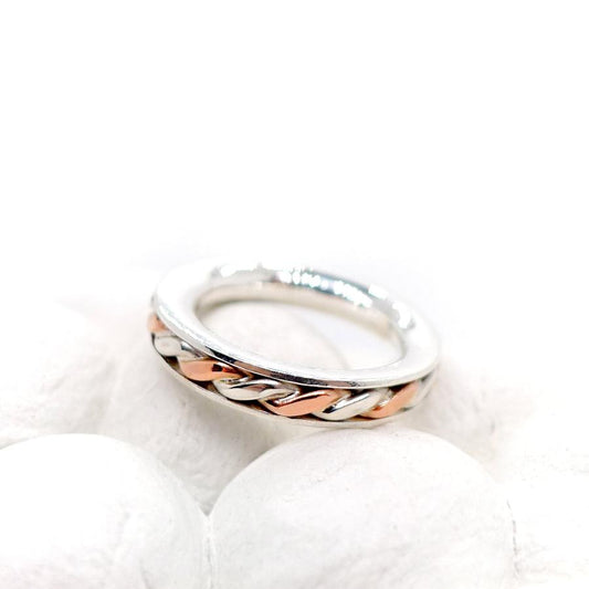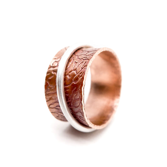 Copper and Silver Spinner Ring, Coral Patterned Meditation Ring, Band Ring
