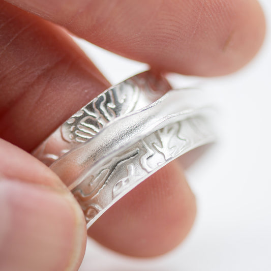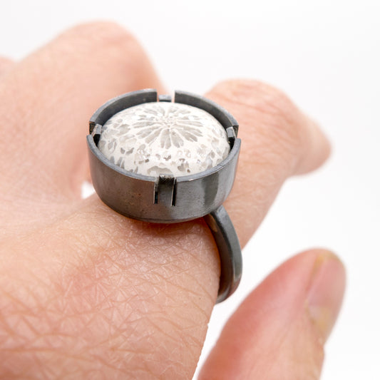 Grayscale Elegance: Fossil Silver Ring