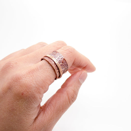 Copper Spinner Ring, Oak Leaf Patterned Meditation Ring, Band Ring