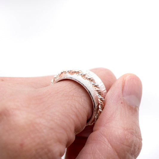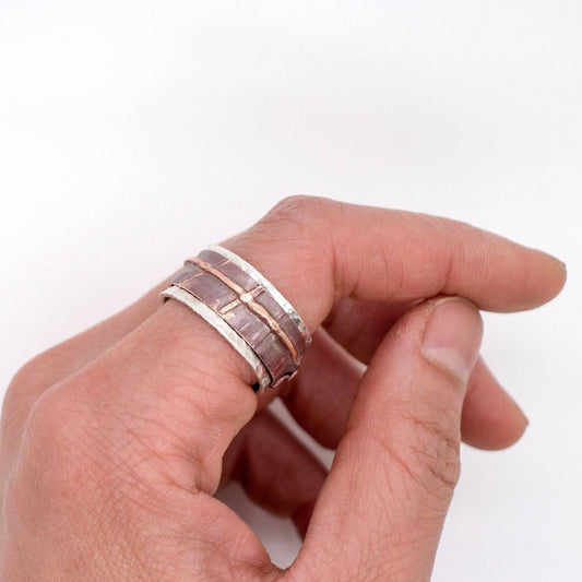 Silver Meditation Ring: Hammered Pattern and Copper Silver Twist Spinner