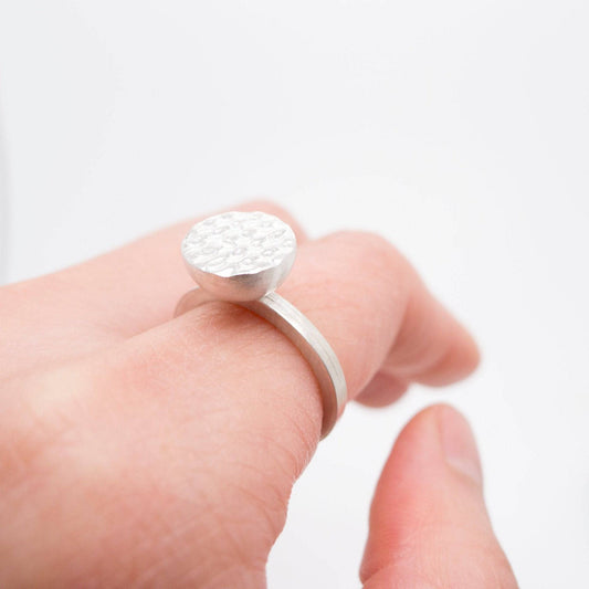 Silver Dome Ring with Waffle Pattern