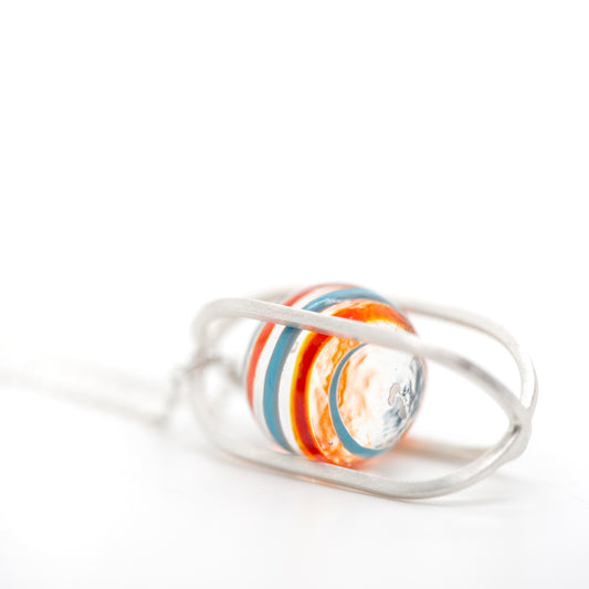 Marble Kinetic: Silver and Pink Pendant Necklace